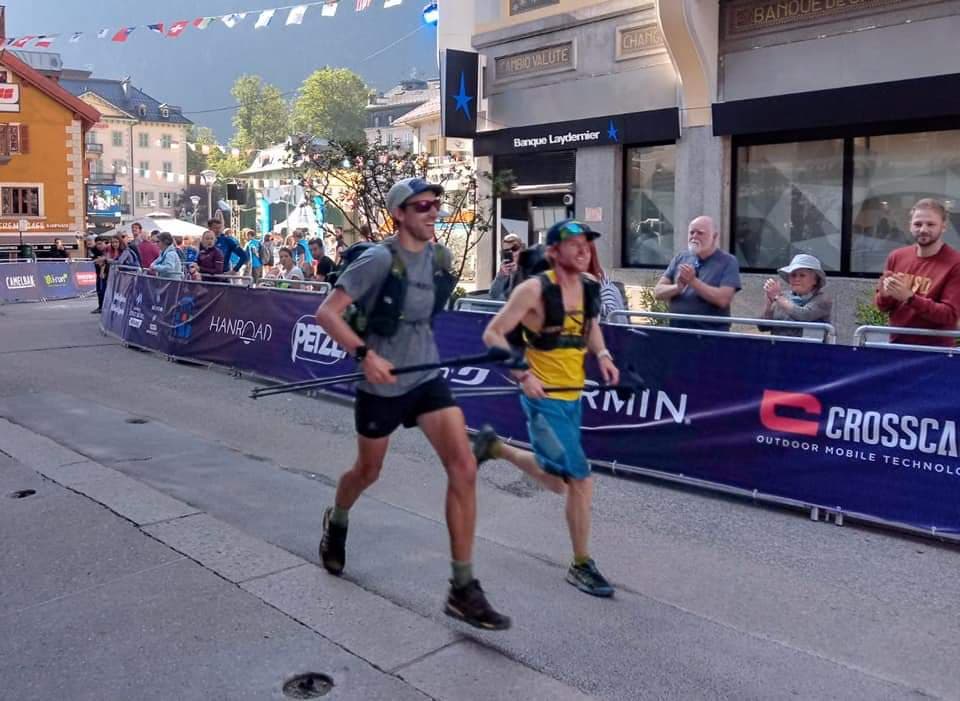 300km done, Sam and Rob run through the streets of Chamonix. (Courtesy photo.)