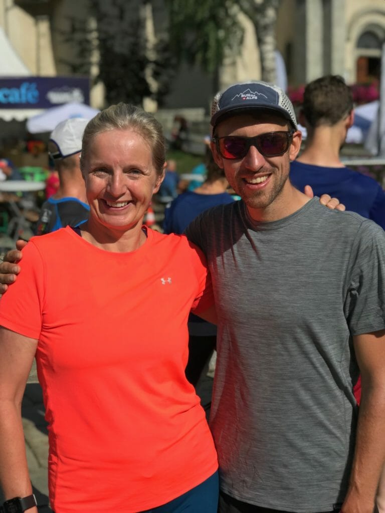 Run the Alps guide Sam Hill ran this year’s PTL event. He’s pictured here with past Run the Alps trip guest Claire Garner. (Photo courtesy of Claire Garner.)