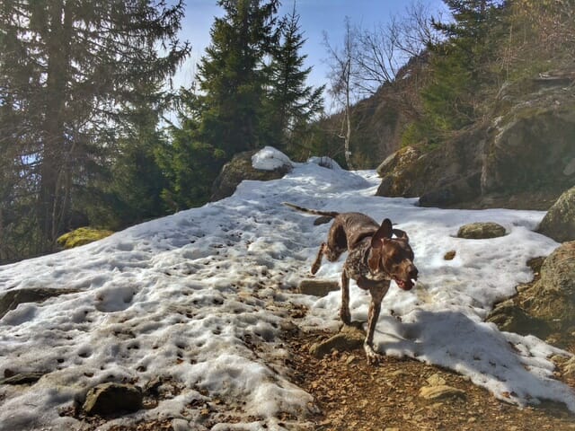 Rosa will be 8 years in April this year. I think the mountain air is keeping her young looking. She’s a German Short-Haired Pointer and around 20 kilograms in weight, which is definitely all muscle!