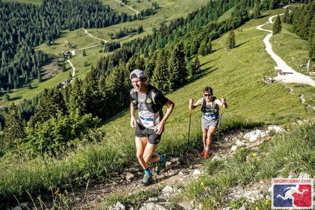 Steep climbing and lots of sweat. George pushing along the Mozart Ultra 75 km; +/- 4.000 m course. Photo courtesy Sportograf.