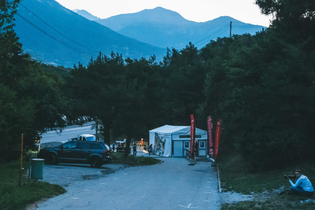 Greg: The starting area was dark and quiet when Milo and I met at 6:10 am, about an hour before sunrise. We had to mask up to enter the area to pick up our race numbers. There were no lines– we walked right up to the tables. The volunteers checked to see that I had a mobile phone with a required SOS app on it and the Sierre-Zinal race organization phone number to call, in case I dropped out of the run.