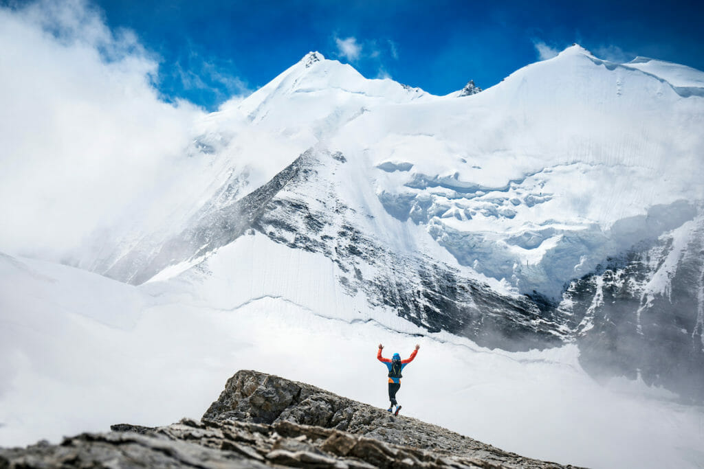 Our Run the Alps Senior Guide Alister Bignell tops out on the Schöllihorn, one of the highest locations in the Swiss Alps reachable by a trail run. Photo courtesy of PatitucciPhoto.
