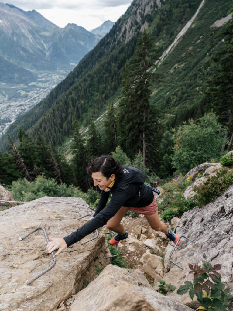We asked trail running coach Manu Ranchin from Chamonix’s trail running club CMBM to give some advice to those attempting the route. Manu said that while the path is generally safe to ascend, it’s crucial to pay attention to the loose gravel sections and steep drops.  The final third is where it gets technical – with ladders, cables, and metal steps fastened into the boulders. Power-hiking turns quickly turns into full-body scrambling.
