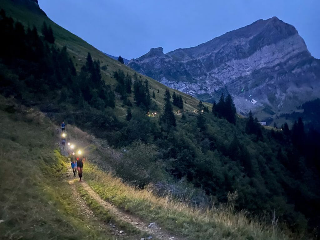 I had been planning to race, but it’s been a busy summer—too busy—culminating in a flat-out week. So instead, after a short night of sleep at Art.Boutique.Hotel-Beauséjour, I headed out onto Champéry’s Rue Village. It was a few minutes after 5:00 am, and with headlamp glowing, and a large cowbell in my pack, it wasn’t more than 15 minutes later that I was headed up the steep first climb at the base of the range.