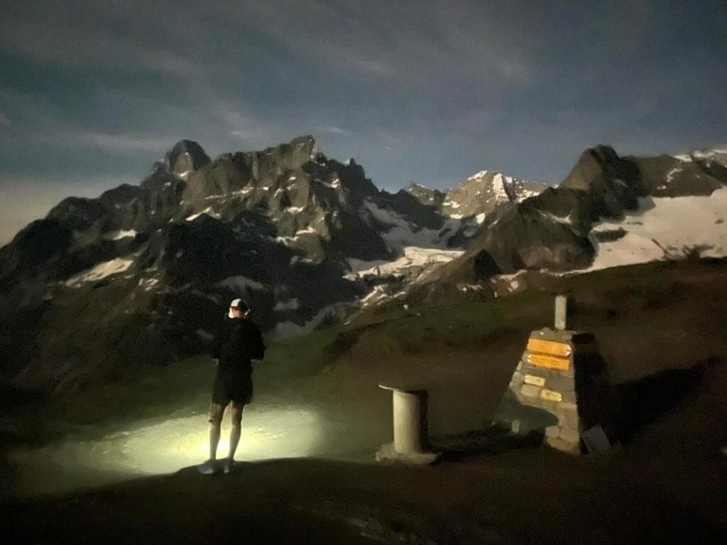 Mike: I was pretty nervous! A lot of that was because I had never climbed the Italian side of Mont Blanc,  and any time you push your boundaries it’s going to make you a little nervous. I also have never run for more than 24 hours in one push, and I know I am not great at night. Although I was nervous, I was also excited. The “Pope” route was totally unknown for both me and Dave Searle, who was guiding me during that part.